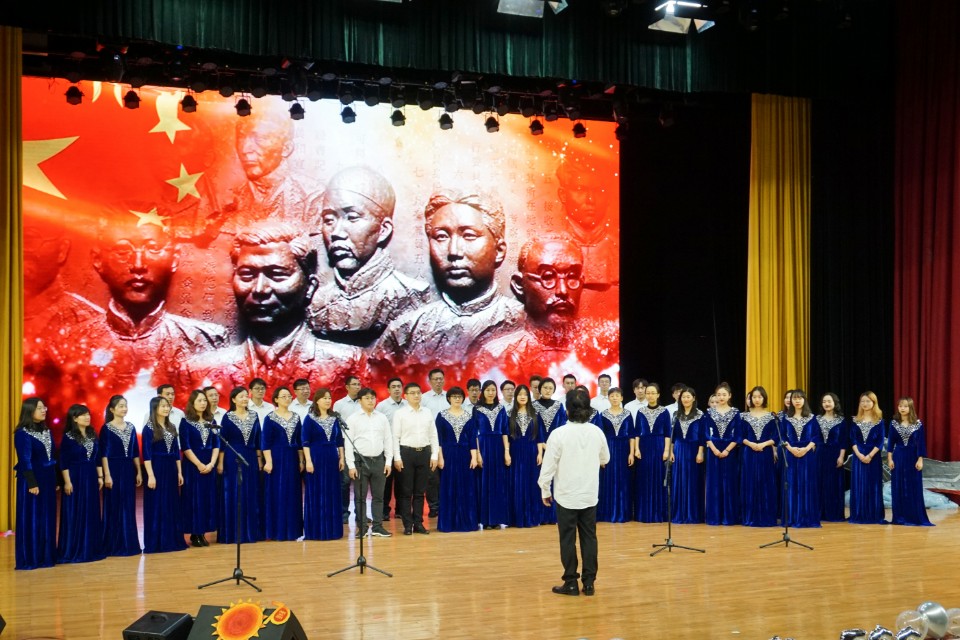 昨夜,凄风苦雨。今天,阳光灿烂。九百六十万中华版图上,创造着一个又一个辉煌的奇迹。在“灿烂的阳光下”,亿万中华儿女,沐浴在时代春风里。这首由商学院师生共同演绎的合唱,将晚会拉开帷幕。
