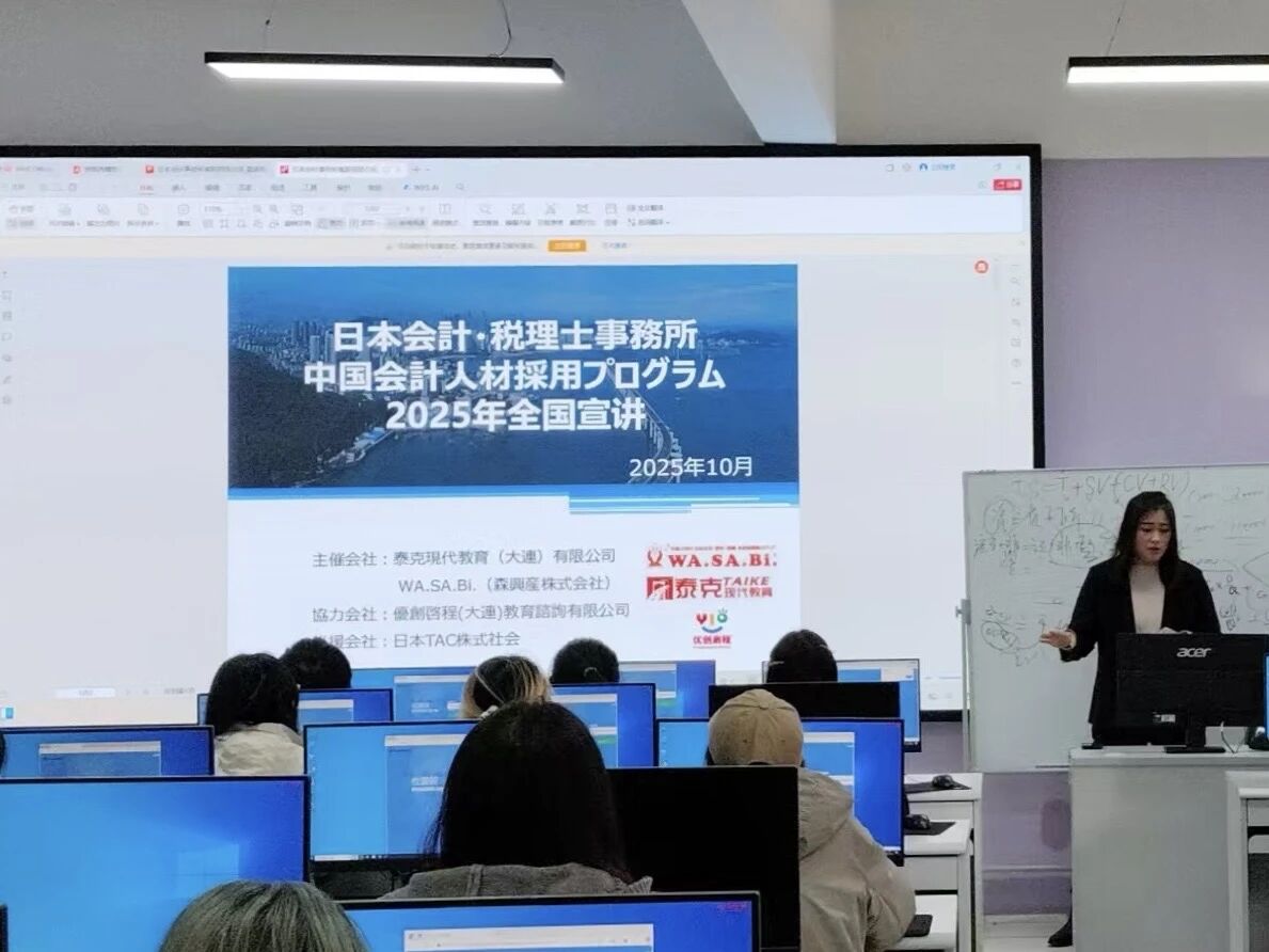 10月22日,商学院在励学楼216教室(财务管理实验室)举行日式簿记人才赴日就职讲座。本次讲座由财务管理教研室耿兴龙主持,邀请到泰克现代教育有限公司的总经理顾洋、日语教务主任郗瑒、日语教务部长宫崎崇子担任主讲人。