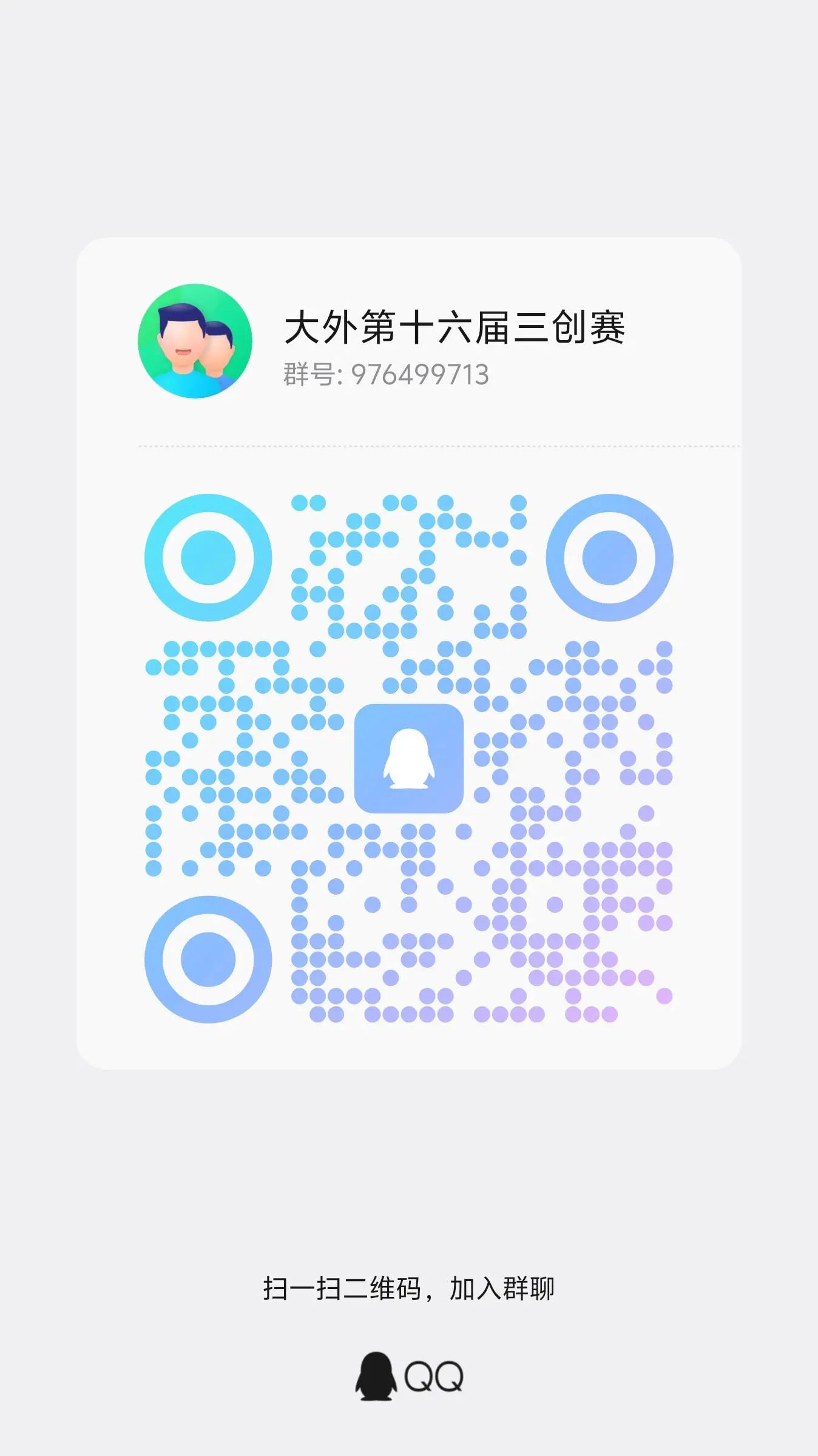 报名参赛队队长可进入QQ群(群号为:976499713)如有疑问请务必及时加群进行咨询解决,入群申请须标注学院及参赛项目,入群后请将群昵称修改为“姓名-团队名称”。