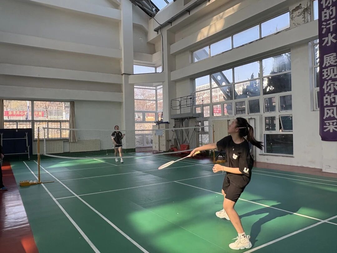 本届赛事设个人赛和团体赛两大类别,涵盖男单、女单、男双、女双、混双五个竞赛项目。个人赛中,选手们球技娴熟,网前吊球轻巧灵动;团体赛里,队员们秉持“凝心聚力,勇攀高峰”的精神,快节奏比拼中沉着应战,前场拦网精准,后场高远球到位,协作紧密,战术清晰,用一次次精彩发挥,赢得了在场同学们热烈掌声。